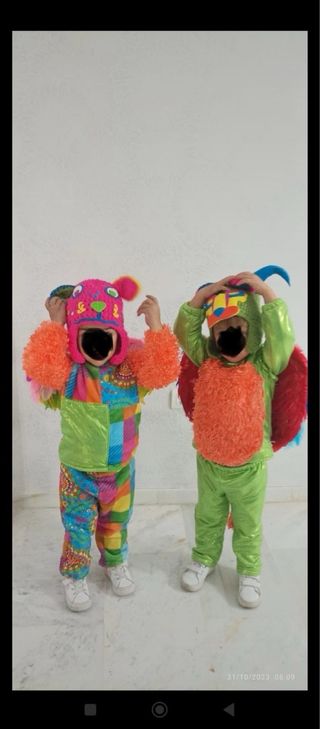 Dos disfraces de alebrijes infantiles, ideales para fiestas de disfraces o Halloween. Son muy coloridos. - Precio por unidad - Perfectos para niños. - Colores vibrantes y diseños únicos