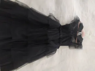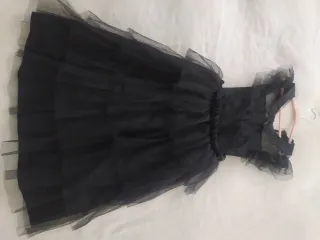 Disfraz de Miércoles Addams de Zara Kids, talla 10. Perfecto para fiestas o para fans de la serie. - Diseño inspirado en el personaje. - Tejido de tul negro. - Falda con volantes.