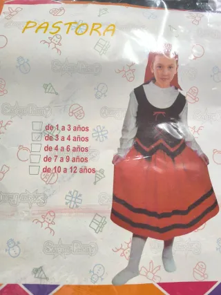 Disfraz de pastora para niña. - Talla: 3 a 4 años. - Incluye vestido y chaleco. - Diseño tradicional.