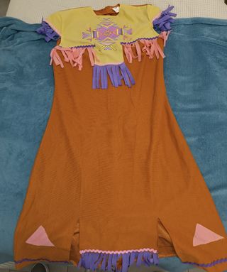 Disfraz india mujer, talla 42-44 Medidas: el vestido mide 100cm Contorno pecho 88 cm Incluye accesorio para mangas, piernas, cintura, frente y tmb un hacha de india.