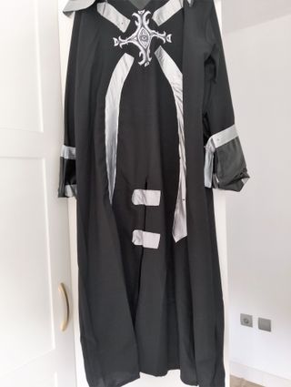Disfraz de vampiresa para Halloween, de la marca Atosa. - Vestido largo con mangas acampanadas y cuello alto. - Perfecto para una fiesta de Halloween. - Complementos (pinza pelo y cinturón) incluidos. - Usado 1 vez.
