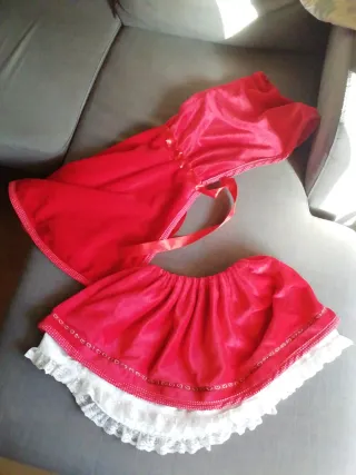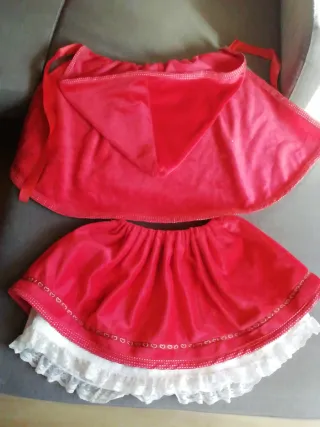 Disfraz de Caperucita Roja hecho a mano para niña. - Vestido rojo con detalles. - Falda con encaje blanco. Tela de terciopelo gordo, e interior de la falda raso blanco con encaje. Talla 4-6 años la goma de la falda es bastante elástica.