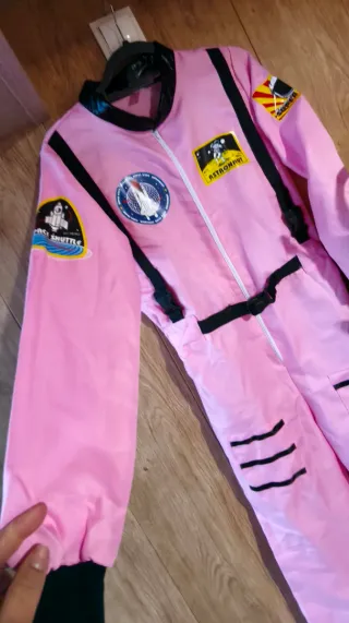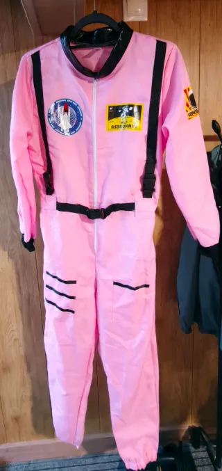 Disfraz de astronauta en color rosa, T- XS. - Cierre de cremallera frontal. - Tirantes negros ajustables. - Cinturón con hebilla. - Parches temáticos en el pecho.
