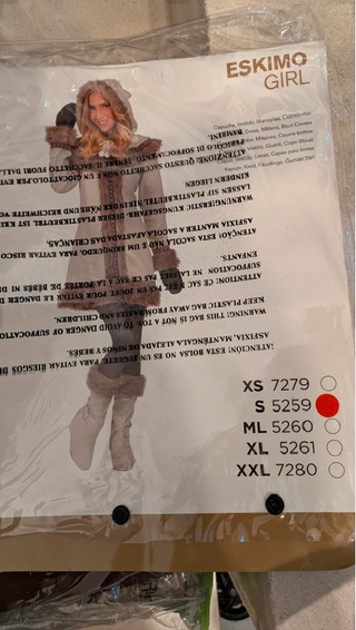 Este disfraz de esquimal para mujer es perfecto para fiestas temáticas o Halloween. Incluye detalles de pelo sintético y un diseño inspirado en la vestimenta ártica. - Acabado en blanco y marrón. - Talla S. - Compuesto por capucha, casaca, cubrebotas y manoplas. - Un único uso.