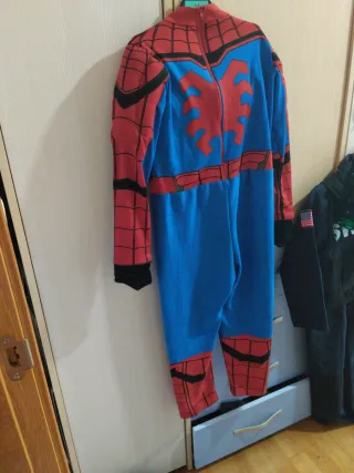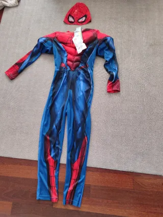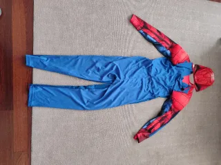 Disfraz infantil del superhéroe Spiderman. Perfecto para fiestas o juegos. - Diseño inspirado en el traje de Spiderman. - Incluye máscara. - Talla M, para 8 -10 años. - Comprado en Mango. - Mide 110 cm. de alto, del cuello al tobillo. - Sin estrenar, con la etiqueta.