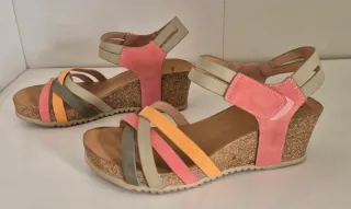 Sandalias de cuña con tiras de colores. - Diseño de cuña. - Tiras en varios tonos.