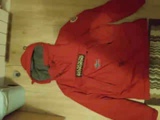 Chaqueta Napapijri de color rojo, ideal para el frío. - Capucha ajustable. - Bolsillo frontal con cremallera. - Diseño con logo y bandera en el pecho. Tiene alguna tontería (desperfecto) pero está muy bien por el precio que tiene.