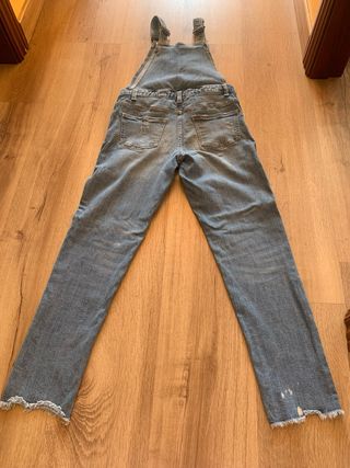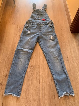 Tejanos vaqueros para niña con un estilo moderno y desenfadado. - Diseño desgastado con rotos. - Tirantes ajustables. - Bolsillos frontales y traseros.