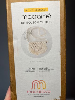 Vendo kit completo para crear tu propio bolso tipo clutch de macramé con flecos. Ideal para amantes del DIY, manualidades y accesorios handmade. ✨ Marca: Macranova ✨ Nivel: Intermedio ✨ Incluye: • Cuerda de macramé • 2 enganches metálicos • Tutorial paso a paso + guía de nudos • Caja original Estado: Nuevo / sin usar (solo abierto para ver contenido). Perfecto para regalo creativo o para hacer tu propio bolso boho este verano. 💰 Precio estimado: 15€ (Nuevo 35,90€ en Etsy) Entrega en mano en Barcelona o Dosrius.