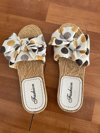Sandalias cómodas con un diseño llamativo. - Adorno de lazo grande con estampado de lunares. - Base de esparto. - Detalle de la palabra Fashion en la plantilla.