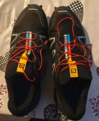 Zapatillas de trail running Salomon Speedcross 3 en color negro y detalles multicolor. Perfectas para terrenos difíciles. - Cierre con cordones Quicklace. - Suela Contagrip para un agarre óptimo. - Diseño deportivo y funcional. Usadas Probadas y usadas en una excursión. En perfecto estado. El precio es porque no tengo la caja pero vienen en una caja y muy bien protegidas.