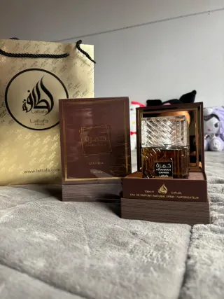 Perfume árabe Lattafa Khamrah Qahwa, sin estrenar. Con envoltorio perfecto Aroma café y canela. - Fragancia Eau de Parfum. - Vaporizador natural. - Contenido: 100ml / 3.4 FL.OZ.
