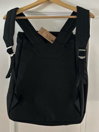 Mochila negra con detalles en cuero