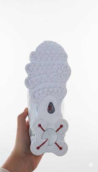 Zapatillas Nike Shox en color blanco y detalles plateados. Un diseño icónico con la tecnología Shox. - Parte superior de malla transpirable. - Sistema de amortiguación Shox. - Detalle de Swoosh plateado.