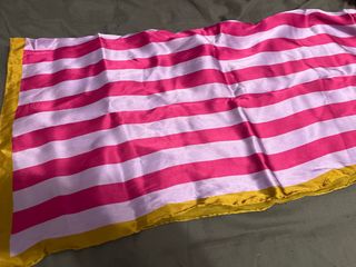 Pañuelo de seda rayas rosa morado y borde dorado