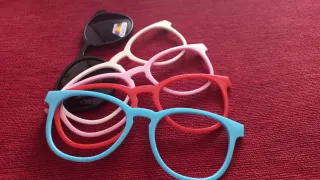Set de gafa 6 en 1, - 1 gafa y 5 monturas de clip magnético intercambiables. - Nuevas a estrenar. - Gafa transparente con cristales sin graduar ( puedes llevar a tu óptica de confianza y que te las graduen ) - Montura negra de sol con lentes polarizadas - Montura blanca - Montura naranja - Montura azul - Montura rosa - Hago envios. ¿Te interesa? Escríbeme y hablamos