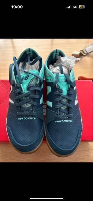 Zapatillas deportivas New Balance MSAPINL3, completamente nuevas. - Diseño moderno en azul y verde azulado. - Cierre con cordones. - Suela de goma. - ( escucho ofertas razonables)