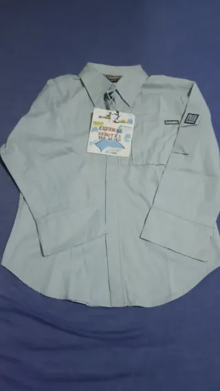 Camisa azul cielo marca mambo goddess 12 como m. Muy bonita ajustada bolsillo con cremallera botones escondidos bolsillo en un brazo manga ancha y abierta para voltear si se quiere. Salía por 48€ ahora por...