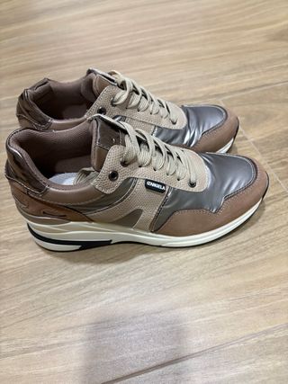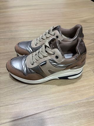 Zapatillas Mujer Talla 37 Marrón y Plata