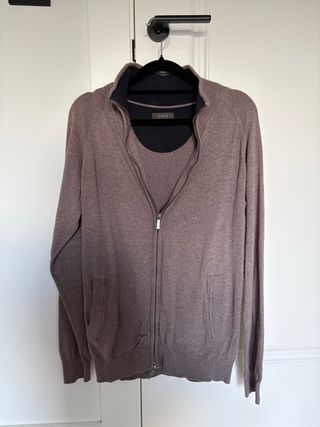 Jersey de punto para hombre con cuello alto y cierre de cremallera. - Diseño de manga larga. - Bolsillos laterales. - Cuello y puños de canalé.