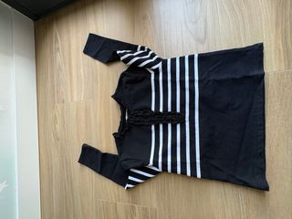 Sudadera de manga larga con diseño de rayas. - Diseño de rayas horizontales blancas sobre fondo negro. - Cuello redondo con detalle festoneado. - Manga larga.