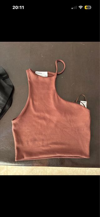 Tops de Bershka con un diseño asimétrico y moderno. - Tejido suave y elástico. - Tirante fino en un hombro. - Escote halter.