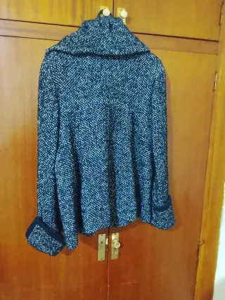 Abrigo de Zara con un diseño moderno y elegante. - Tejido texturizado en blanco y negro. - Cuello amplio y solapa. - Cierre de botones. También se incluye en el precio un abrigo de entretiempo diseño italiano talla M Teléfono de contacto: 742099171