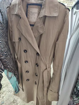 Gabardina clásica de la marca Pull&Bear en color beige. Perfecta para añadir un toque de estilo a tu look. - Diseño atemporal. - Cierre frontal. - Cuello camisero.