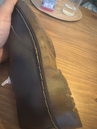 Zapatos de piel negros de Dr. Martens. - Diseño clásico de 3 ojales. - Costuras amarillas distintivas en la suela. - Cordones negros.