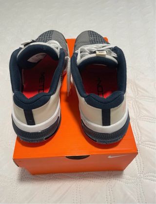 Nike metcon 8, talla 42,5 color blanca y azul. Muy bien cuidadas tan solo una parte de la suela dañada (al subir la cuerda)