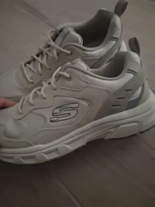 Zapatillas Skechers en color beige y gris, talla 39.5. Perfectas para el día a día. - Diseño deportivo y moderno. - Cierre con cordones. - Detalle del logo S en el lateral.