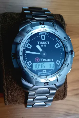 Reloj TissotTissot T-Touch con múltiples funciones. - Bisel con indicaciones de brújula, altímetro, termómetro y barómetro. - Pantalla digital. - Correa de acero.