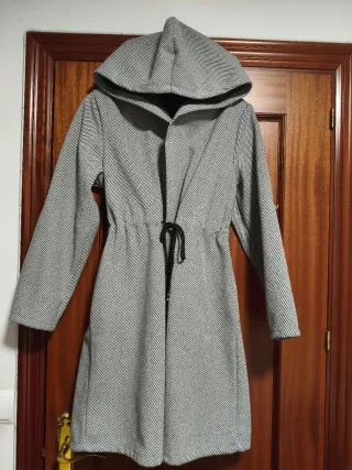 Abrigo con un diseño moderno y práctico, ideal para añadir un toque de estilo a tu vestuario. - Capucha integrada. - Cordón ajustable en la cintura para un mejor ajuste. - Patrón de rayas finas.