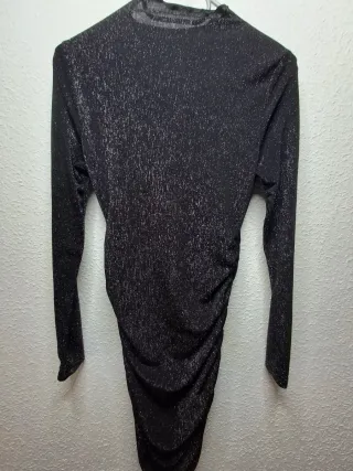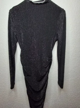 Elegante vestido de fiesta con un diseño brillante. - Manga larga. - Detalle fruncido lateral. - Cuello alto. Solo usado una vez.