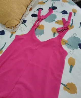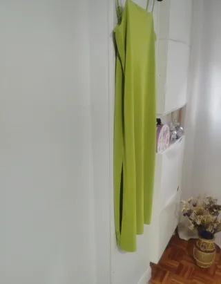 Vestido lencero de H&M en color verde lima. Tejido elástico, no satinado - Tirantes finos. - Abertura lateral. - Largo midi.