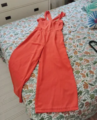 Mono largo de Mango en color naranja. Estilo culotte - Tirantes cruzados en la espalda. - Piernas anchas y fluidas. - Cintura marcada con pinzas.