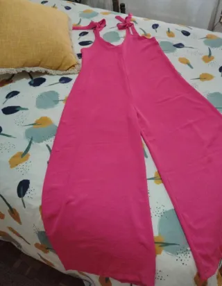 Mono largo de la marca Armonias con corte ancho. - Tirantes con lazada. - Piernas anchas y fluidas. - Tejido suave y cómodo.