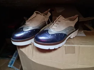 Zapatos Oxford Mujer Azul y Plata