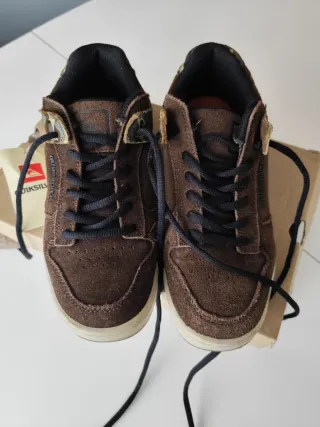 Zapatillas de ante en color marrón con detalles en verde kaki. - Cierre con cordones. - Suela de goma. - Diseño urbano.