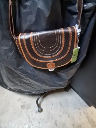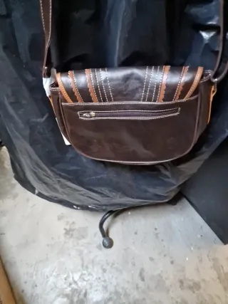 Bolso de piel marrón con detalles