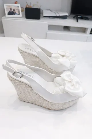 Sandalias cuña Rosa Clará blancas lazo