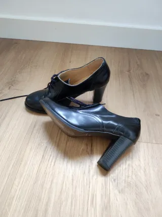 Elegantes zapatos de tacón con cordones. Están sin estrenar. - Diseño tipo Oxford. - Tacón grueso y alto. - Acabado brillante.