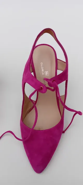 Zapatos de tacón destalonados de Zara. - Material de terciopelo. - Adornados con pedrería y perlas. - Diseño de punta fina. - Correa elástica en el talón.