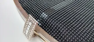 Elegantes zapatos de tacón negros con un detalle de lazo brillante. - Tacón grueso y cómodo. - Tira ajustable al tobillo. - Acabado con purpurina.