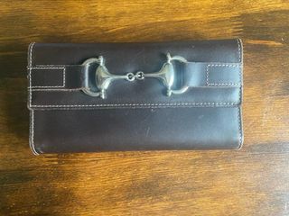 Cartera de la marca El Caballo. - Color marrón. - Detalle metálico tipo bocado. - Costuras blancas visibles.