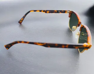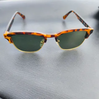 Gafas de sol con montura estilo tortoise y lentes verdes. - Montura de acetato con diseño tortoise. - Lentes de policarbonato en color verde. - Bisagras metálicas. Recojida en mano