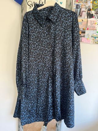 Vestido casual con estampado floral. - Diseño de manga larga. - Cuello camisero. - Cierre de botones. Anchito pero yo lo usaba siempre con correa Solo puesto una vez, da desde una xs a una M/L