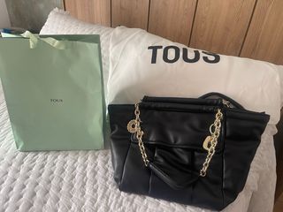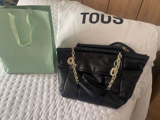 Bolso Tous Negro Piel Cadena Dorada