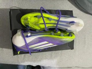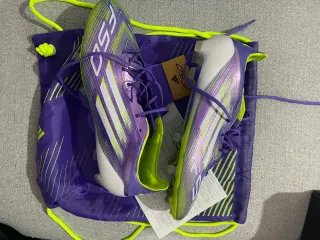 Botas de fútbol Adidas F50 ELITE LL FG en llamativos tonos morados y blancos. - Diseño moderno y llamativo. - Incluye bolsa de transporte.