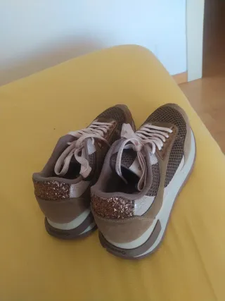 Zapatillas de la marca Gioseppo en tonos marrones y dorados. Perfectas para un look casual. - Diseño con detalles brillantes. - Cierre de cordones.